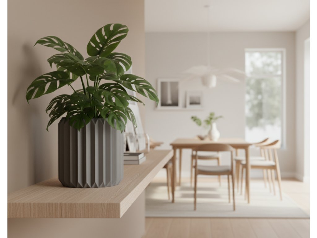 Povrchová úprava květináče je matná, což ještě více podtrhuje jeho čistý design a současně mu dodává luxusní vzhled. Geometrické linie vytvářejí harmonii mezi jednoduchostí a originalitou, takže květináč působí v prostoru jako elegantní doplněk, který nenásilně zvýrazní krásu rostlin. Jeho univerzálnost z něj činí skvělou volbu nejen pro domácnosti, ale také pro kanceláře, recepce nebo komerční prostory, kde podtrhne atmosféru a dodá prostředí profesionální nádech.